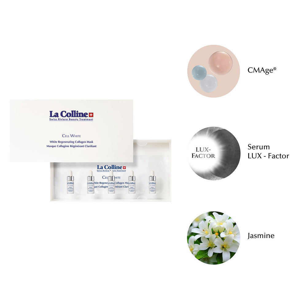 The White Regenerating Collagen Mask is a high-performance program with a lightening, regenerating, and moisturizing action. The skin looks smoother, lighter, and well-toned, resplendent with youthful beauty.
